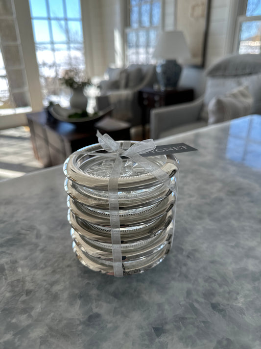 Sold outSilver Rimmed Glass Coaster Set
