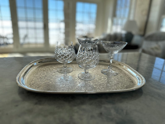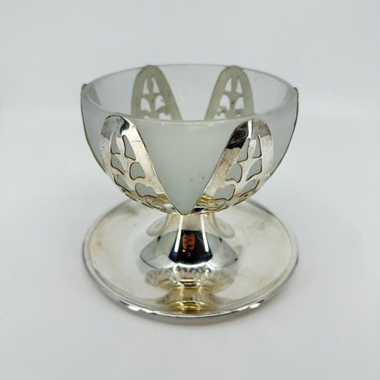 Silver and Frosted Glass Dessert Dishes (set of 8 + large bowl)