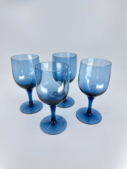 Retro Smoke Blue Wine Glasses (Set of 4)