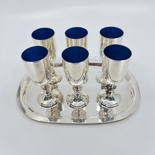 Sunrise Medallion Blue Footed Juice Glasses (Set of 6)